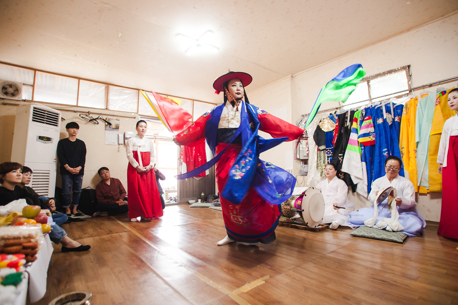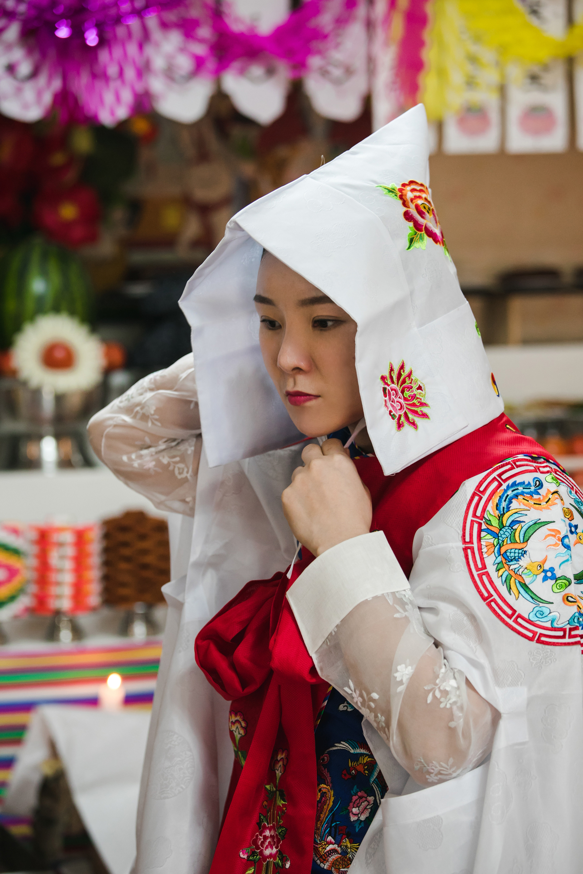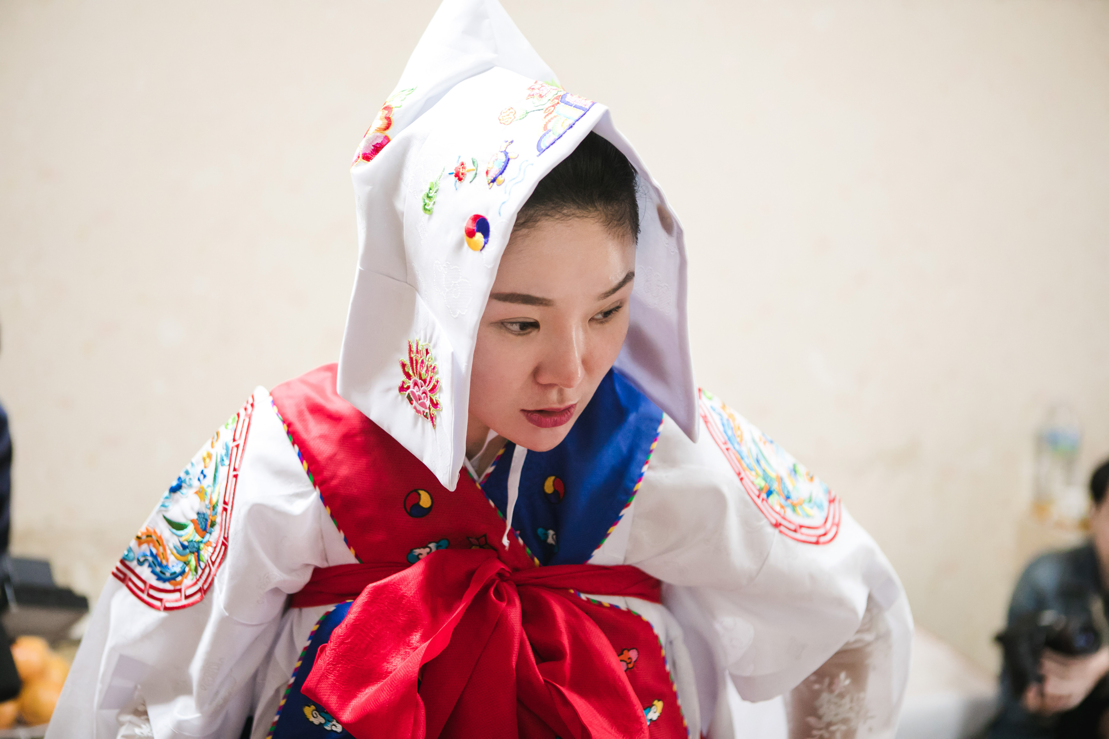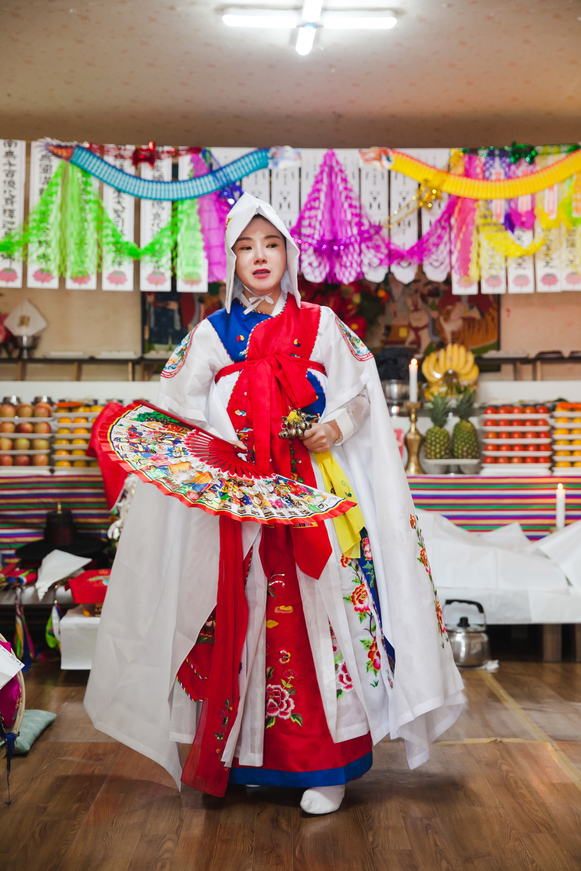 Good [gut] is traditional shamanism, and many of Korean believes Good will kick out evil sprits and bring good luck. Byul-Dang Sunnyu is a shaman, called Moodang [mu:dang]. She invited Youngwoo filming her biggest practice how she accepts God and ancestor, so she can build up her power and ability of fortune telling and prophecies. The Climax of this practice is when God entered the body, she stood on a sword edge. Youngwoo filmed the beginning to the ending of her practice in July 2018.